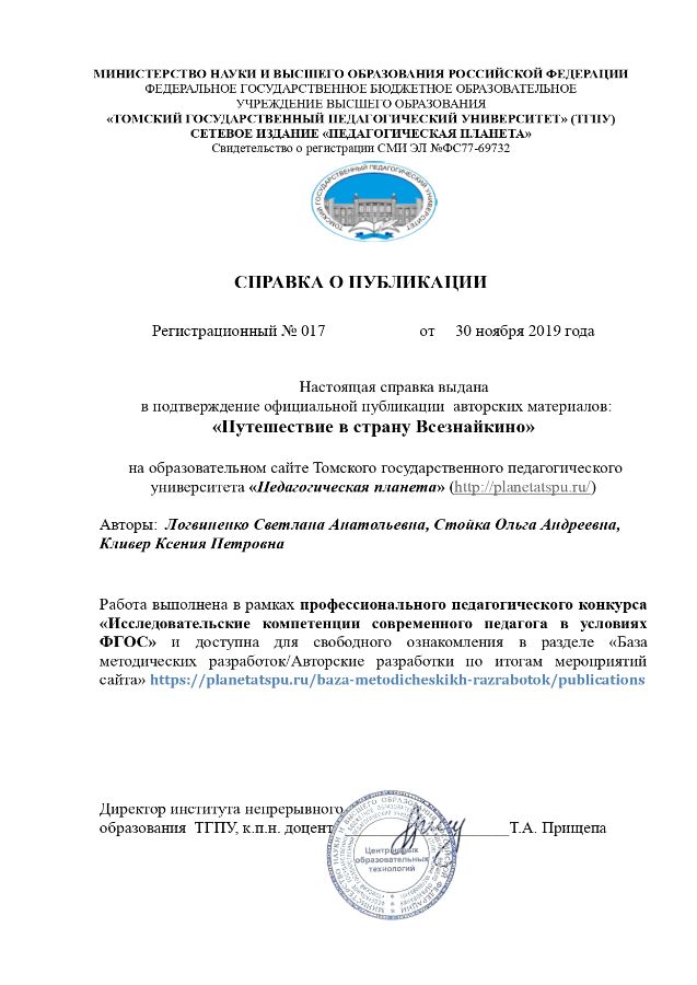 https://planetatspu.ru/baza-metodicheskikh-razrabotok Директор института непрерывного образования ТГПУ к.п.н. доцент Т.А. Прищепа |